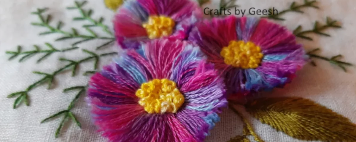 I love creating fluffy textures with floss. So this time I am writing about a creation which I created sometime back using Turkey work stitch.